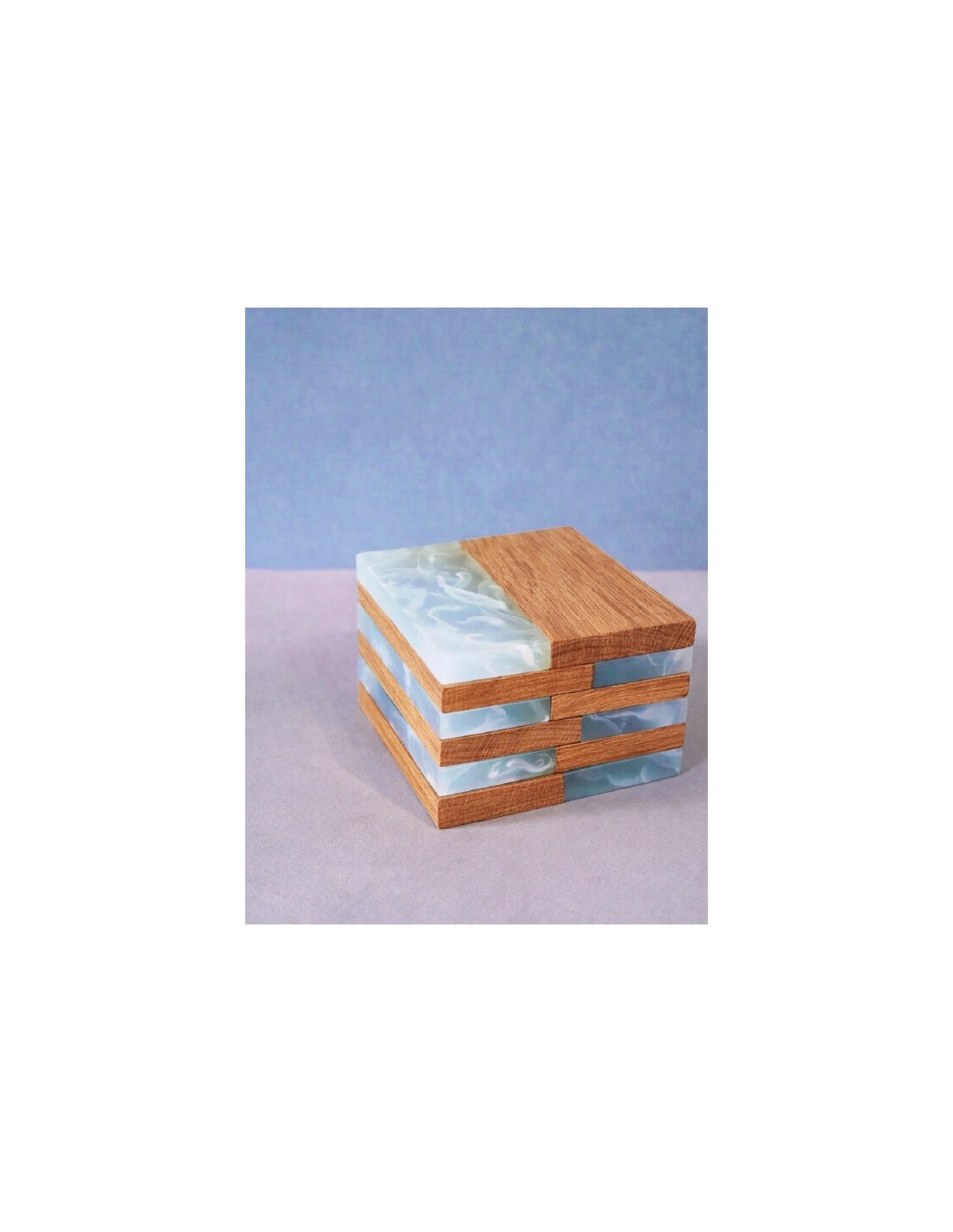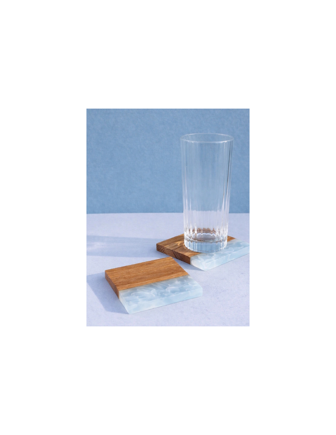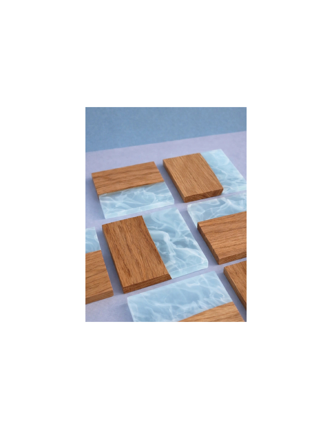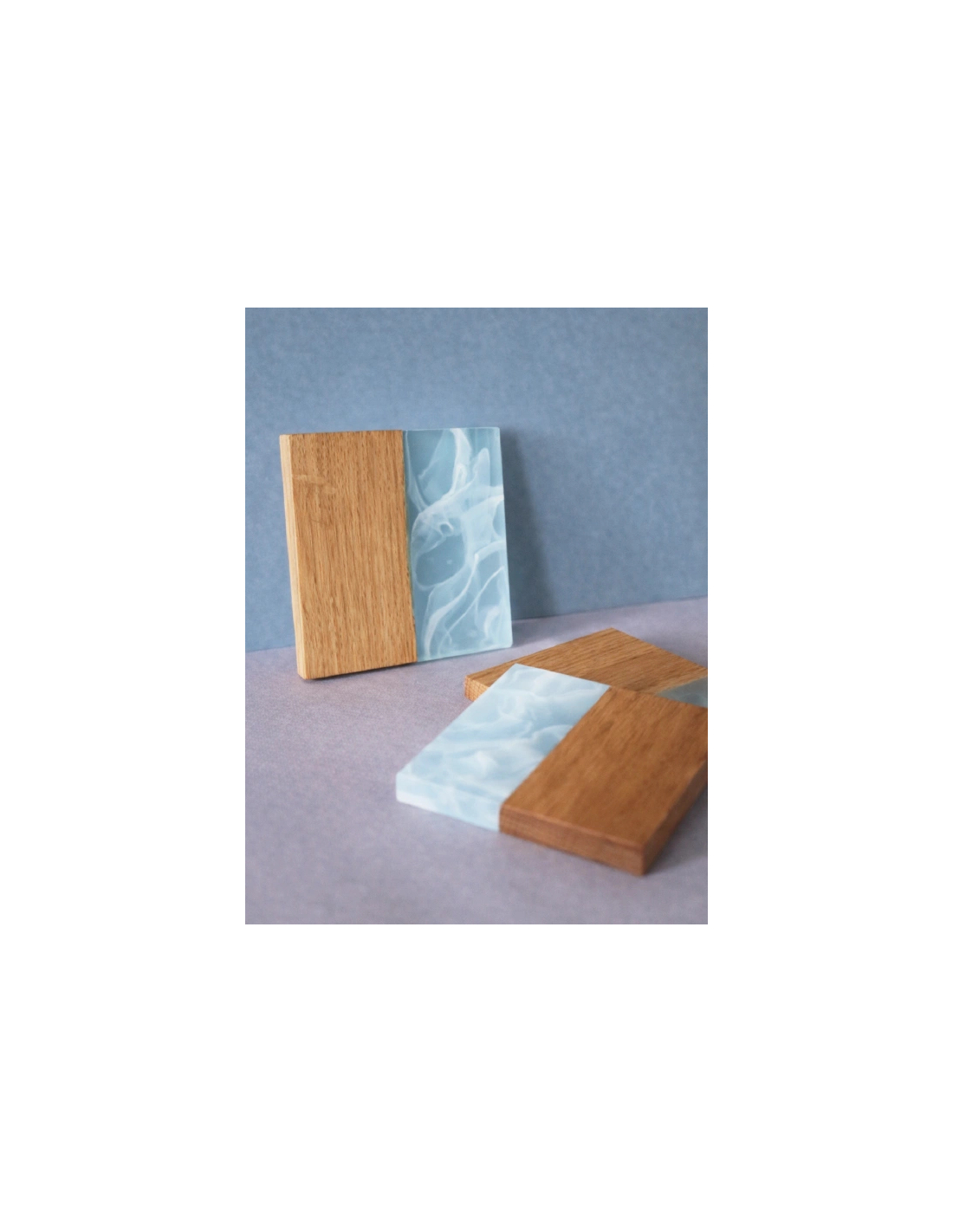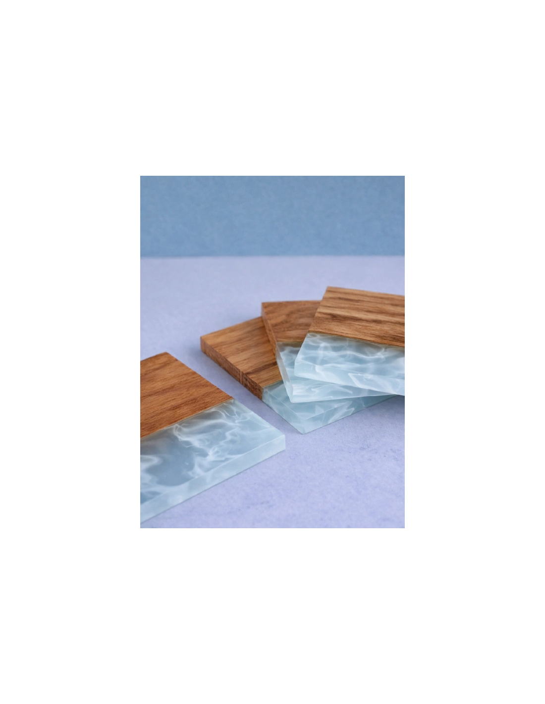 Sous-verres Carrés en Chêne et Résine – Design effet Glace