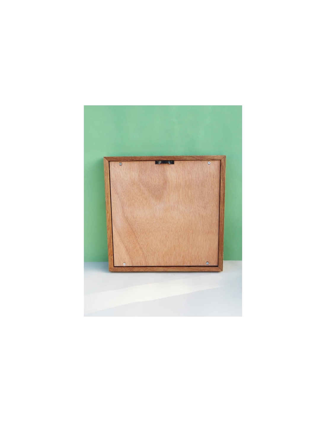 Tous nos tableaux sont disposés sur un cadre en chêne massif fabriqué par nos soins et protégé par une cire végétale pour faire ressortir le veinage du bois et l'imperméabiliser.