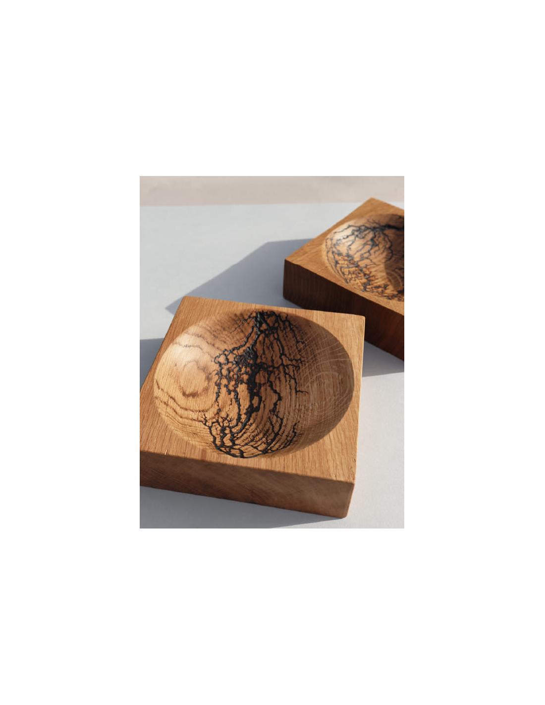 Plonge dans la puissance des éléments avec le vide-poche Foudre en chêne massif. À l'image des éclairs, chaque pièce est unique et capture la furtivité d’un éclair en le figeant dans le bois.