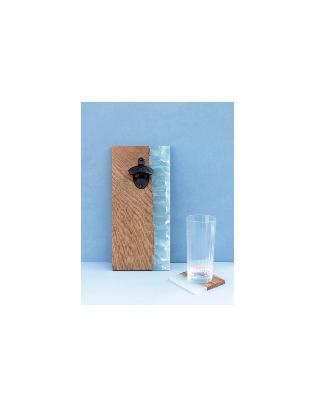 Fabriqué à partir de chêne massif local et de résine époxy aux nuances voluptueuse, il combine praticité et esthétique.